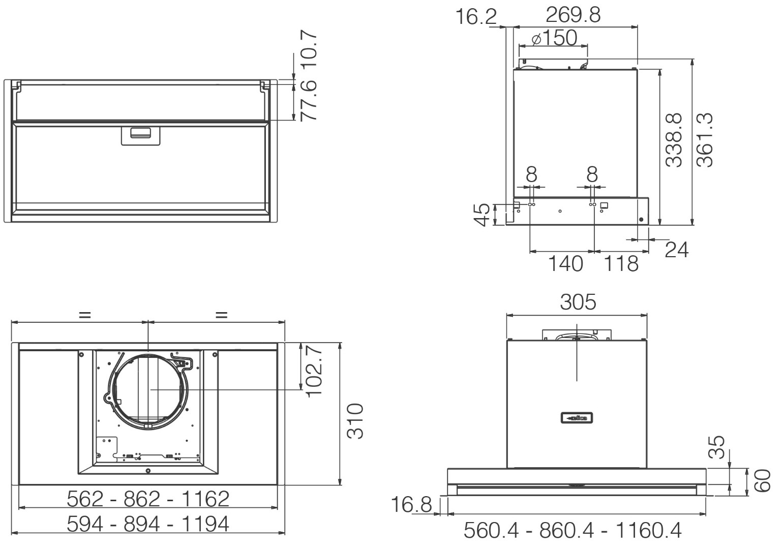 Данная встраиваемая вытяжка буквально исчезает в настенном шкафу. Передний козырек, боковые защитные панели и особые датчики обеспечивают максимальную защиту вашей кухонной мебели от влаги. Изделие выполнено в версии для подключения к приложениям.