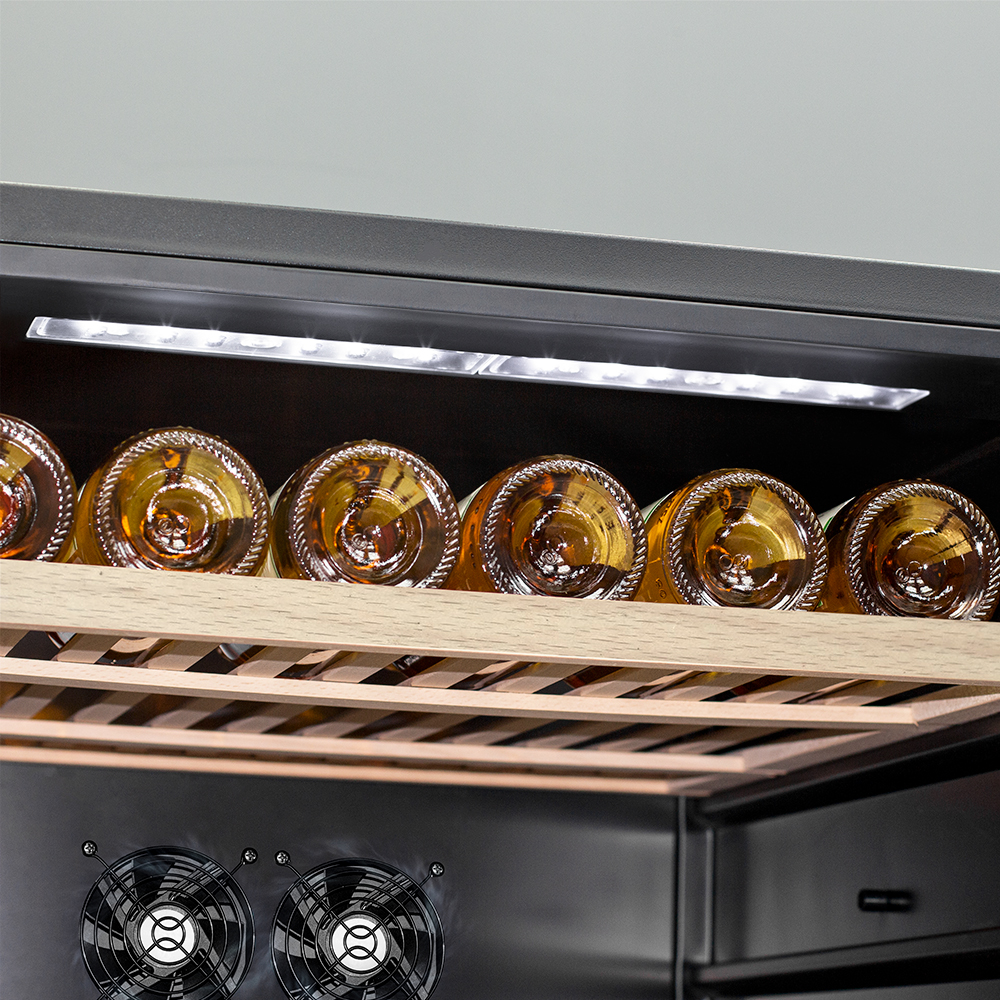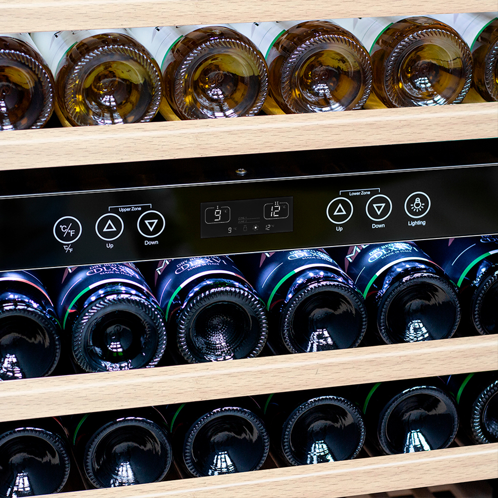 Компрессорный винный шкаф Meyvel MV160-KST2 обладает большой вместимостью и способен разместить до 174 бутылок. Располагаются они на полках из массива бука. Внутреннее пространство шкафа разделено на 2 температурные зоны с возможностью настраивать каждую из них: диапазон нижней зоны от +10°C до +18°C, а верхней - от + 5°C до +10°C. Холодильник поддерживает влажность в диапазоне 60-80%, как в настоящем винном погребе.
